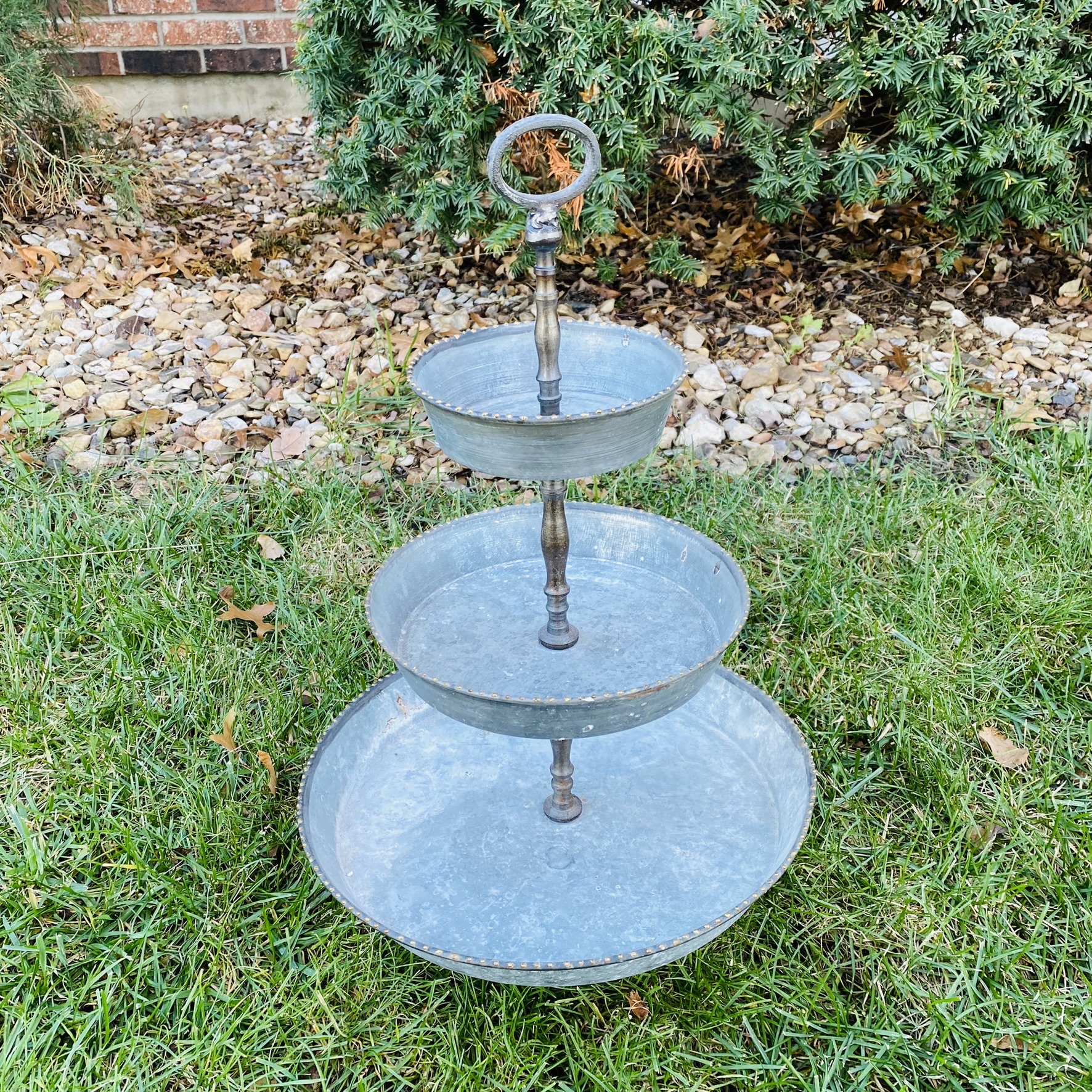 3 Tiered Farmhouse Galvanized Metal Server Tray – $5