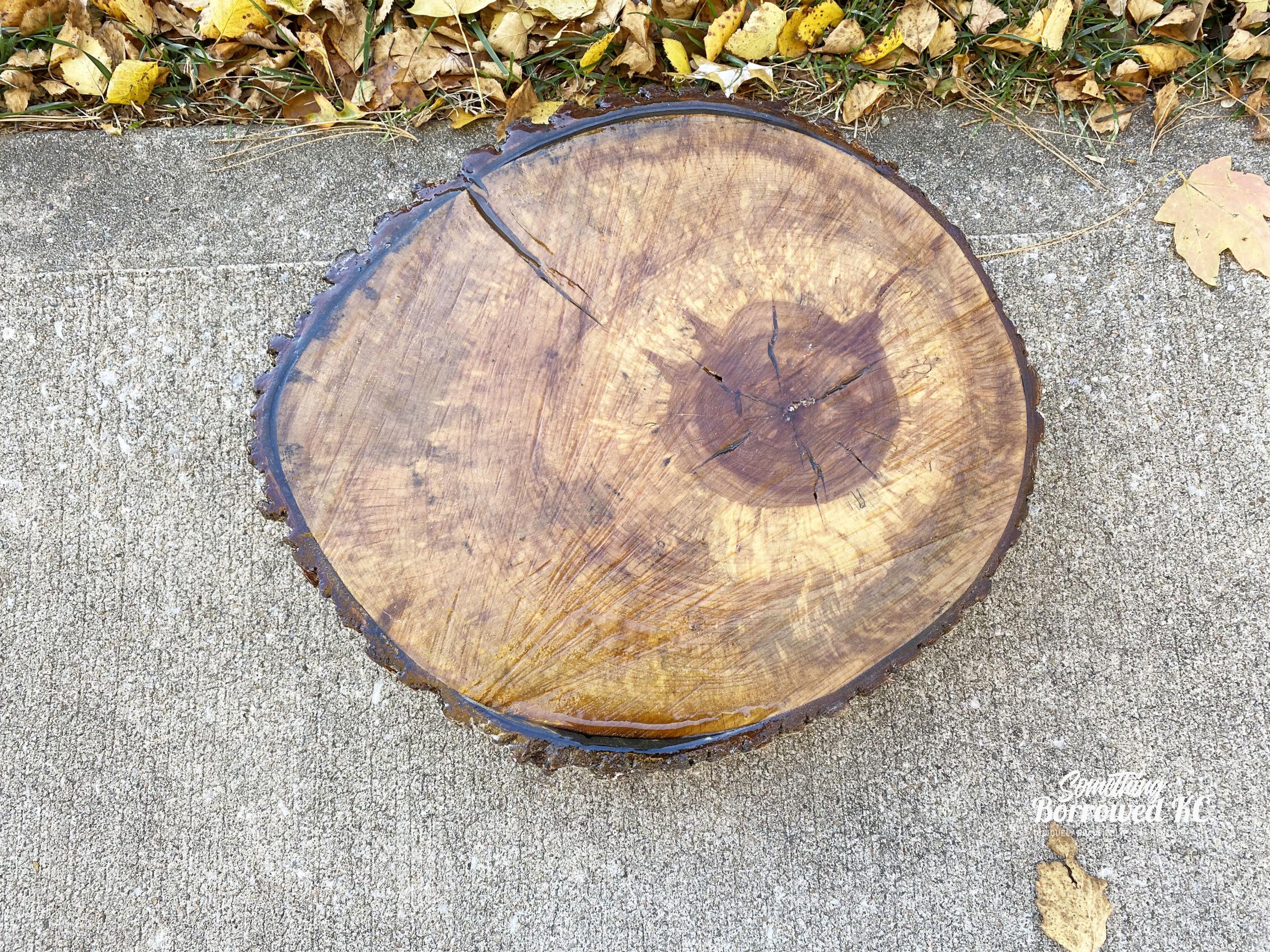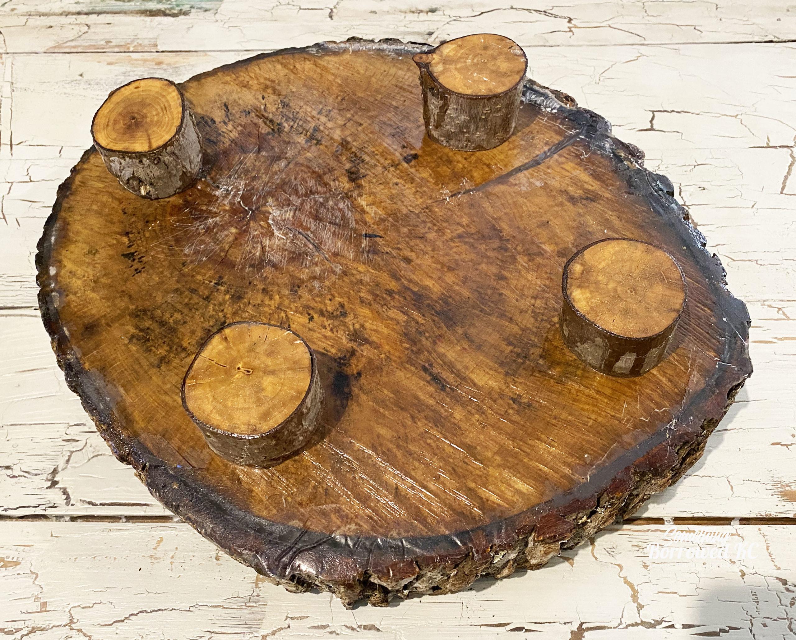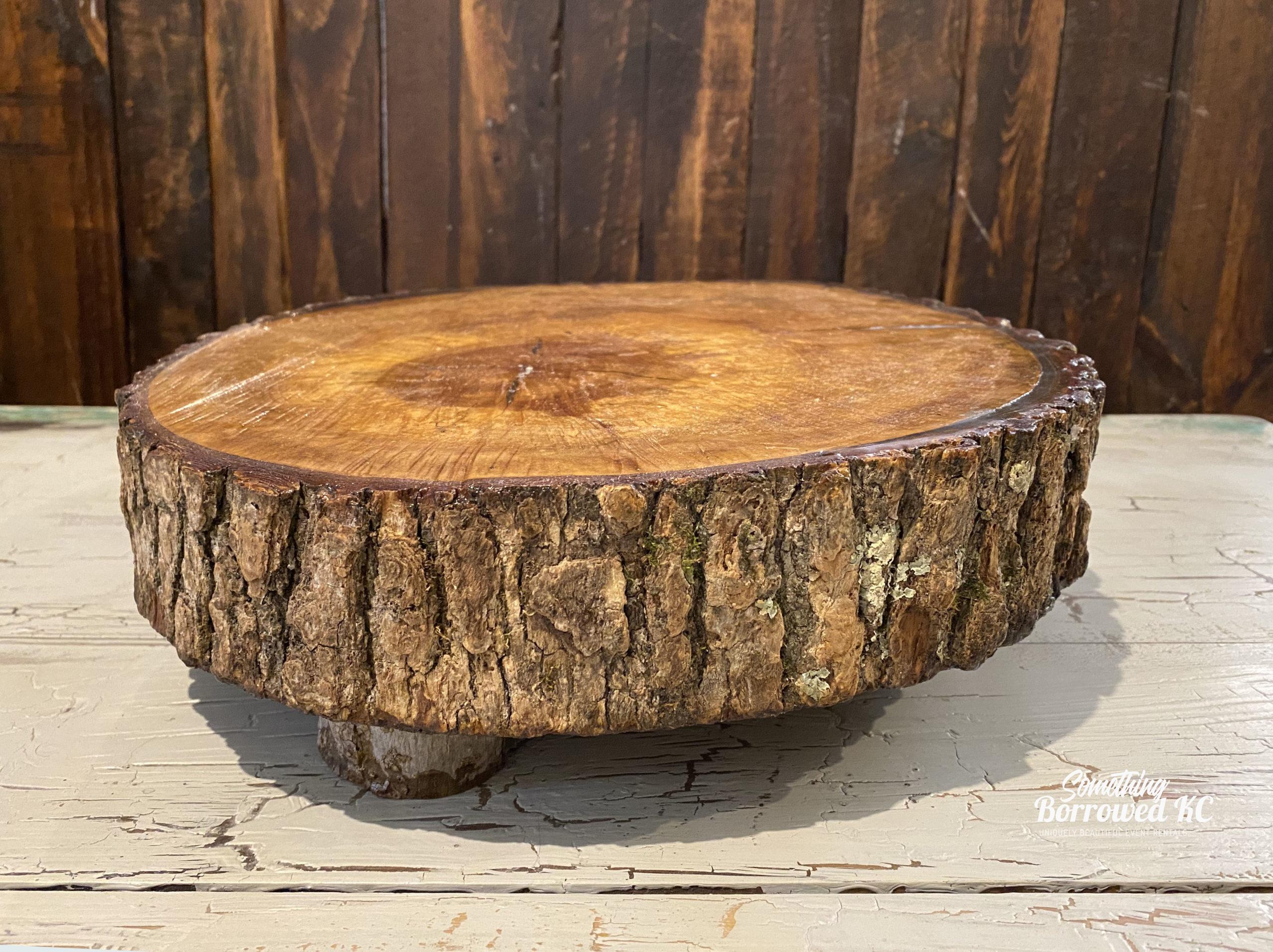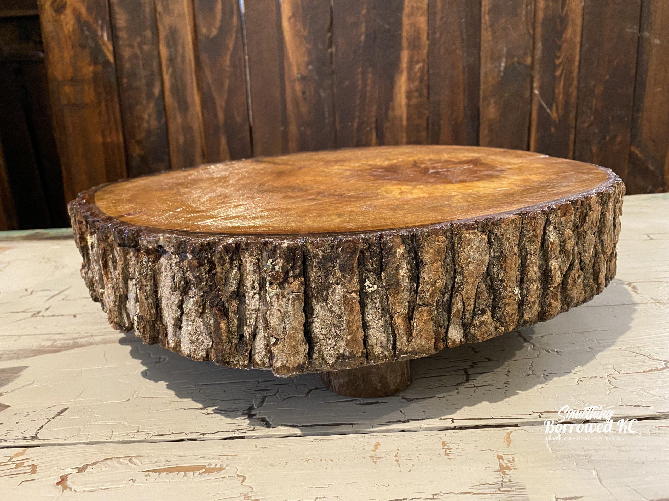 Made with locally sourced and preserved wood slices this cake stand will make a statement!