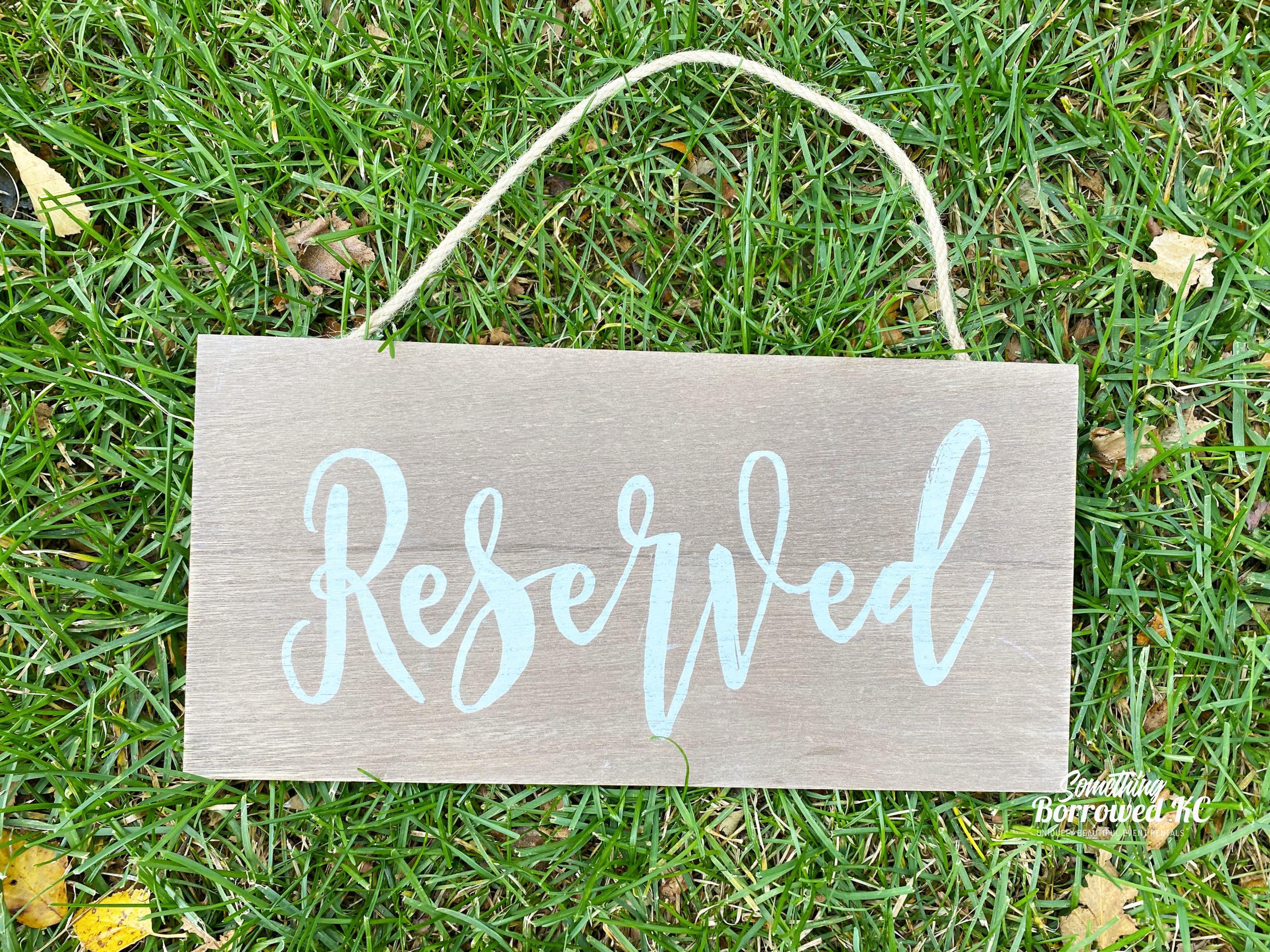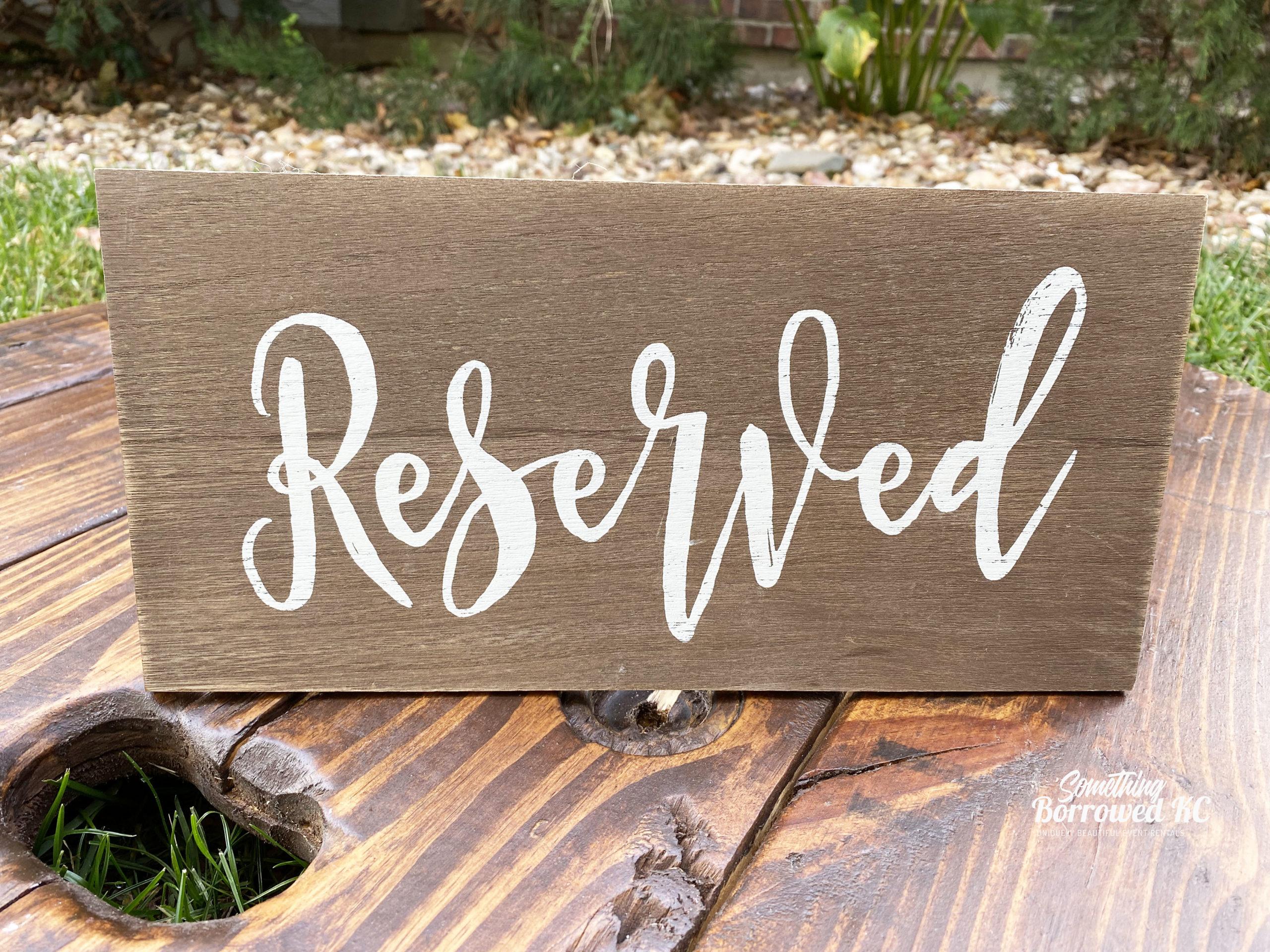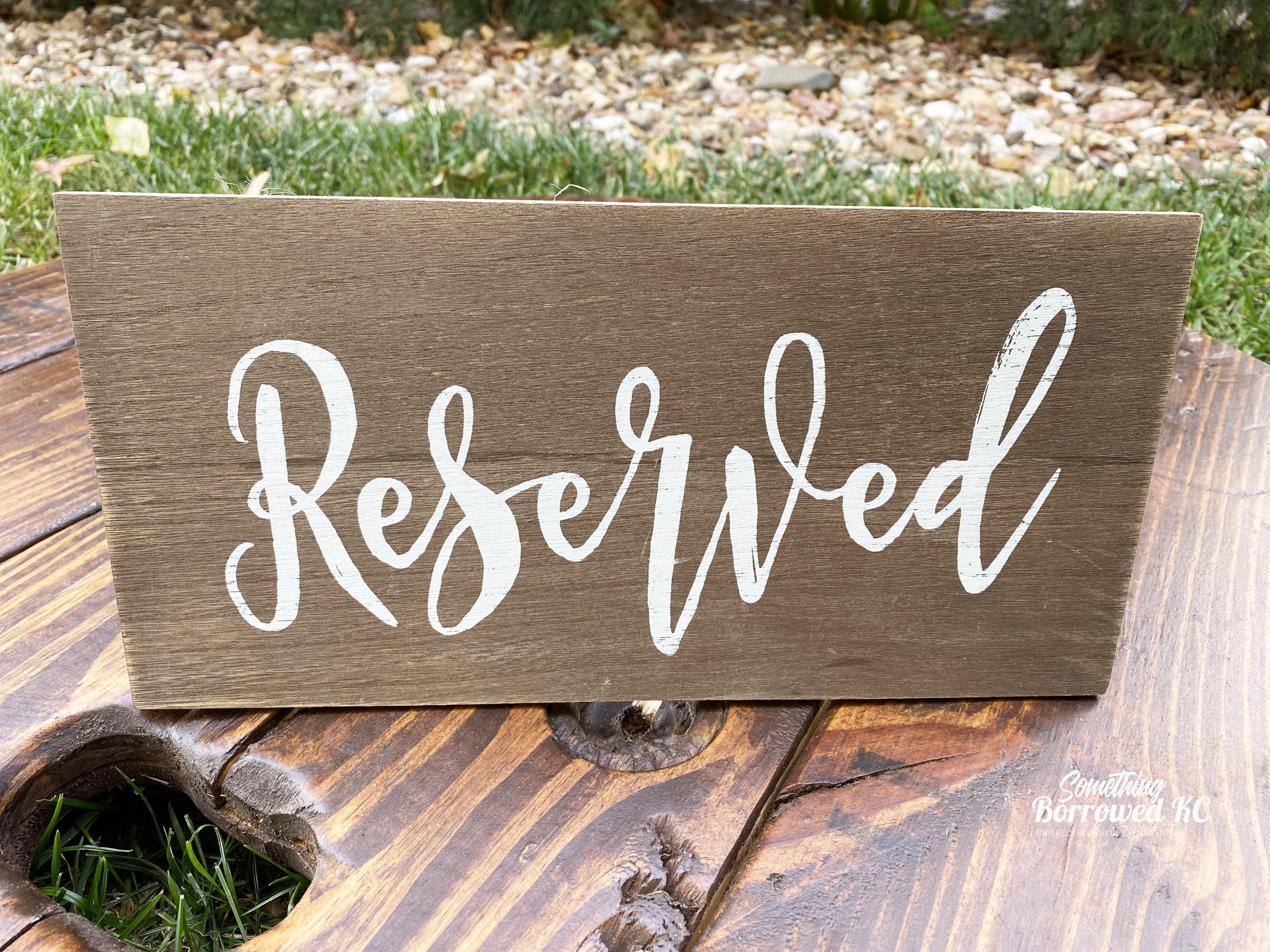 Wonderful flowing script font reserved sign. Can be hung or set on a table.