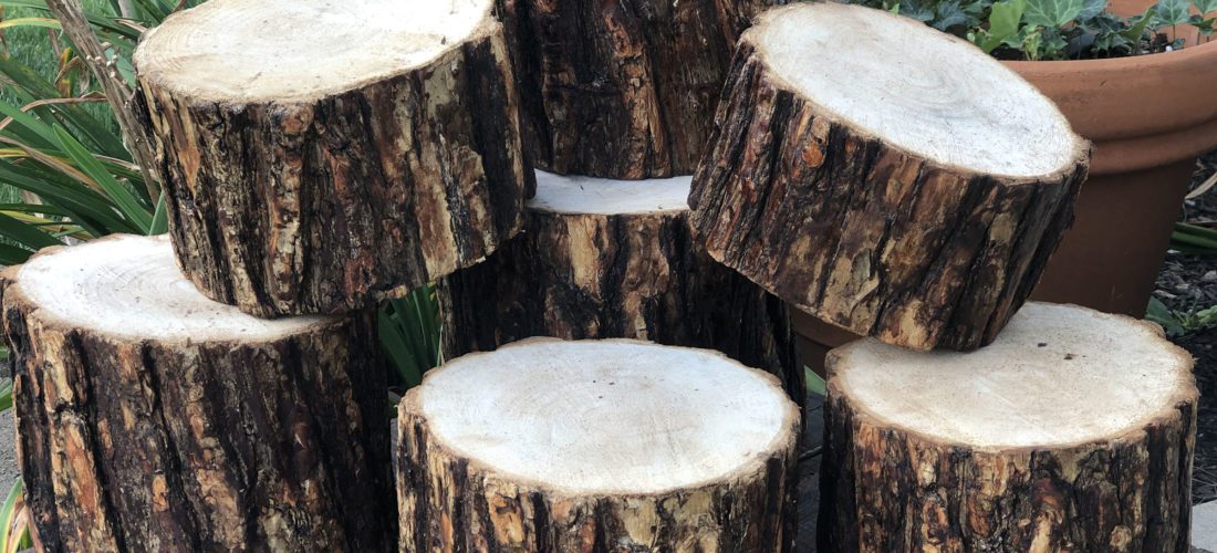 Our rustic log slices are locally sourced. Air dried to preserve the character of the natural wood. Use them as centerpieces or for layering on display tables for any rustic event. Measurements Range from 4”-7”tall, 6”-8” diameter