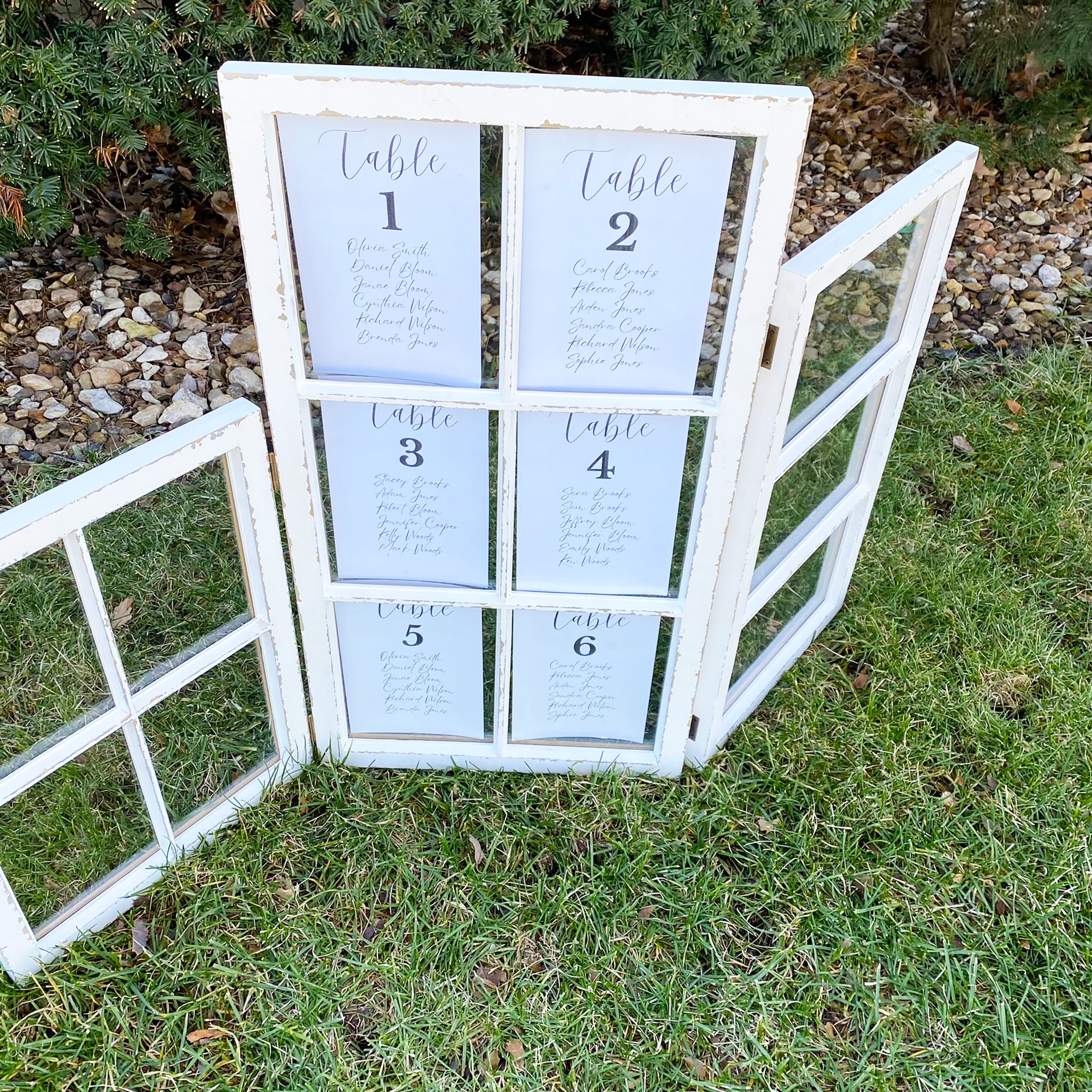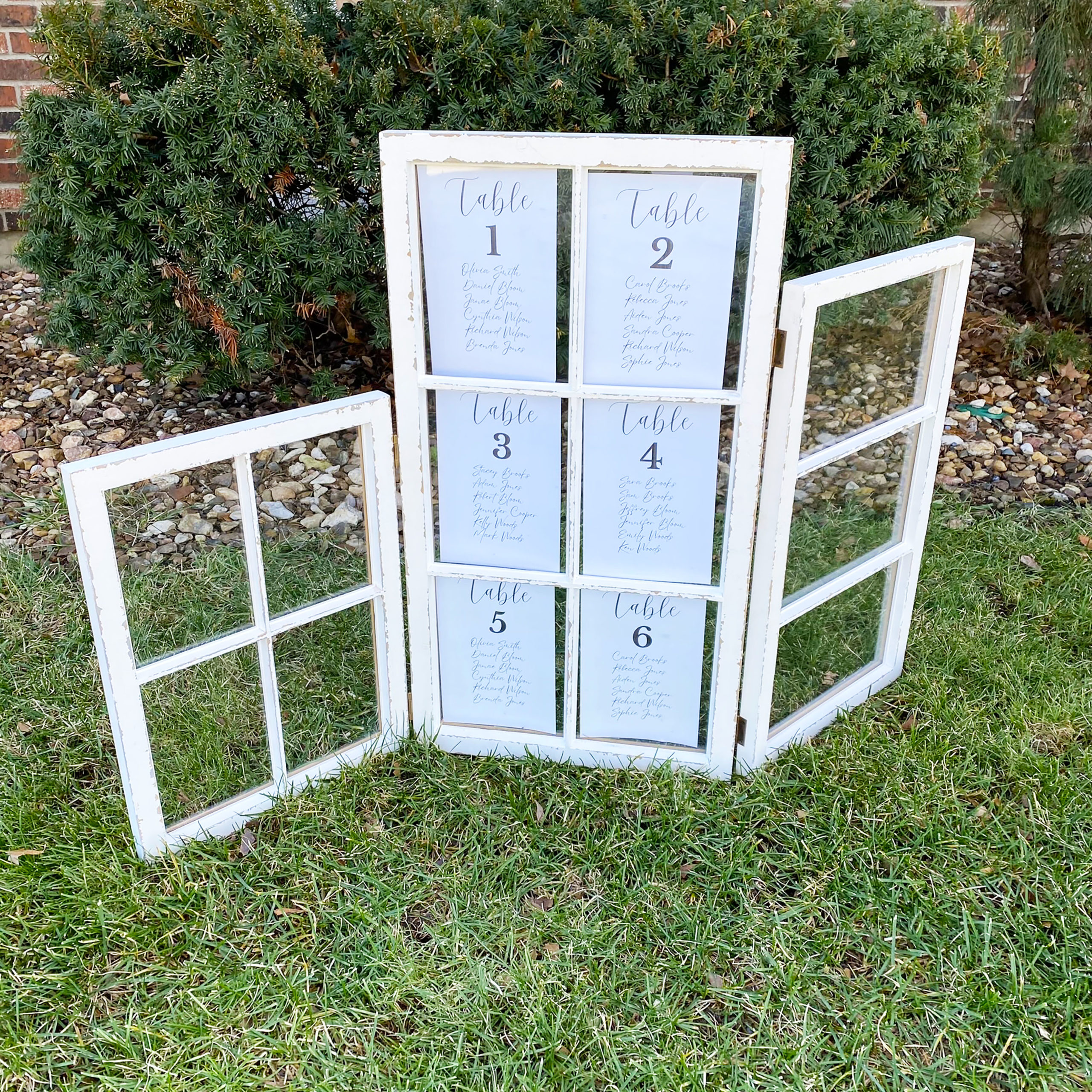Create a unique display chart with this trifold window. Ideal as a Find your seat sign or to display photos or menus