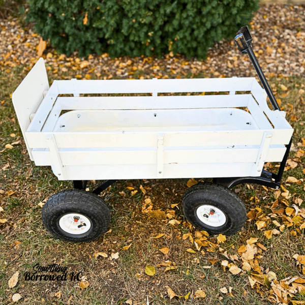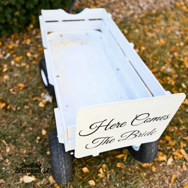 Have a young ring bearer or flower girl that needs to ride in style? This all white wagon is perfect!