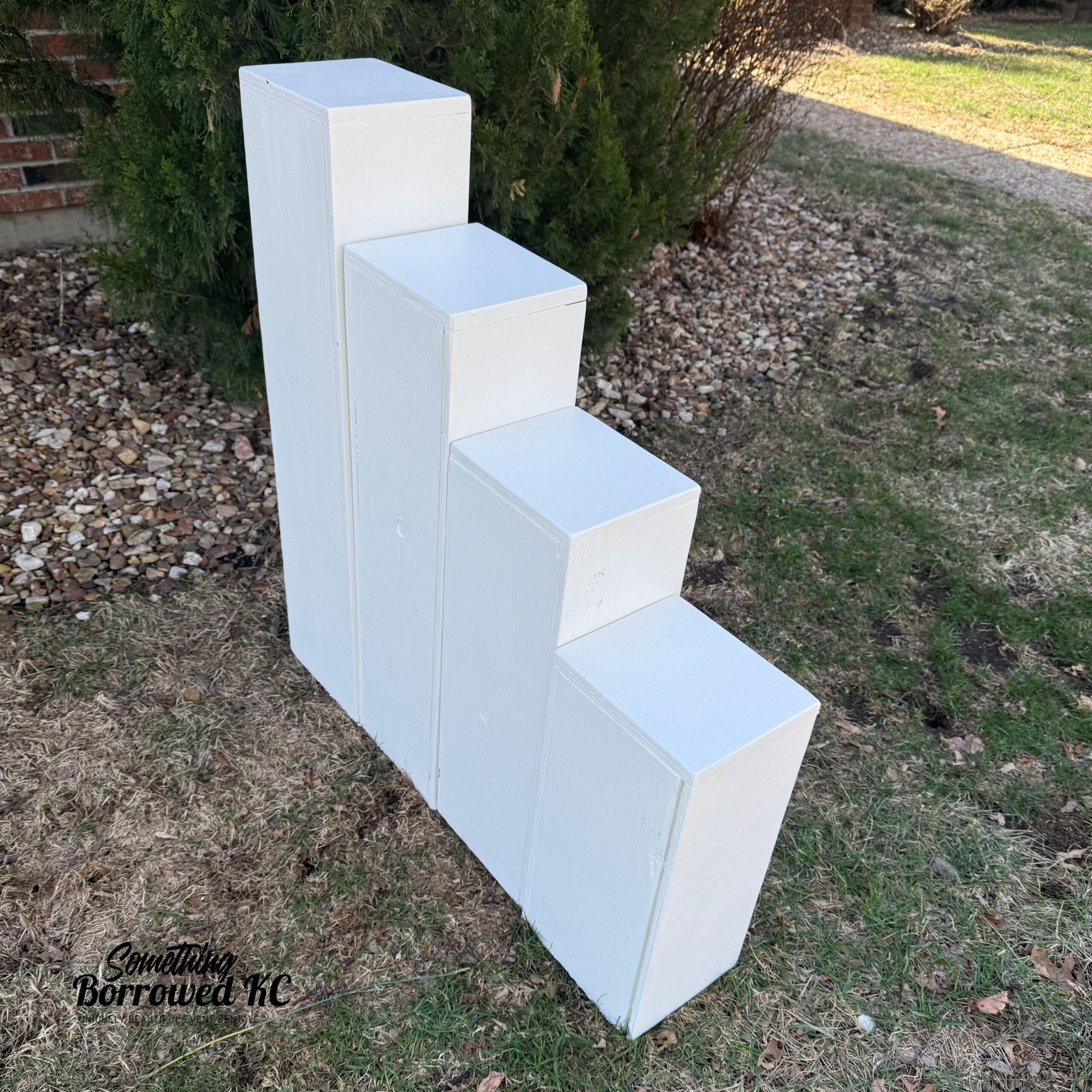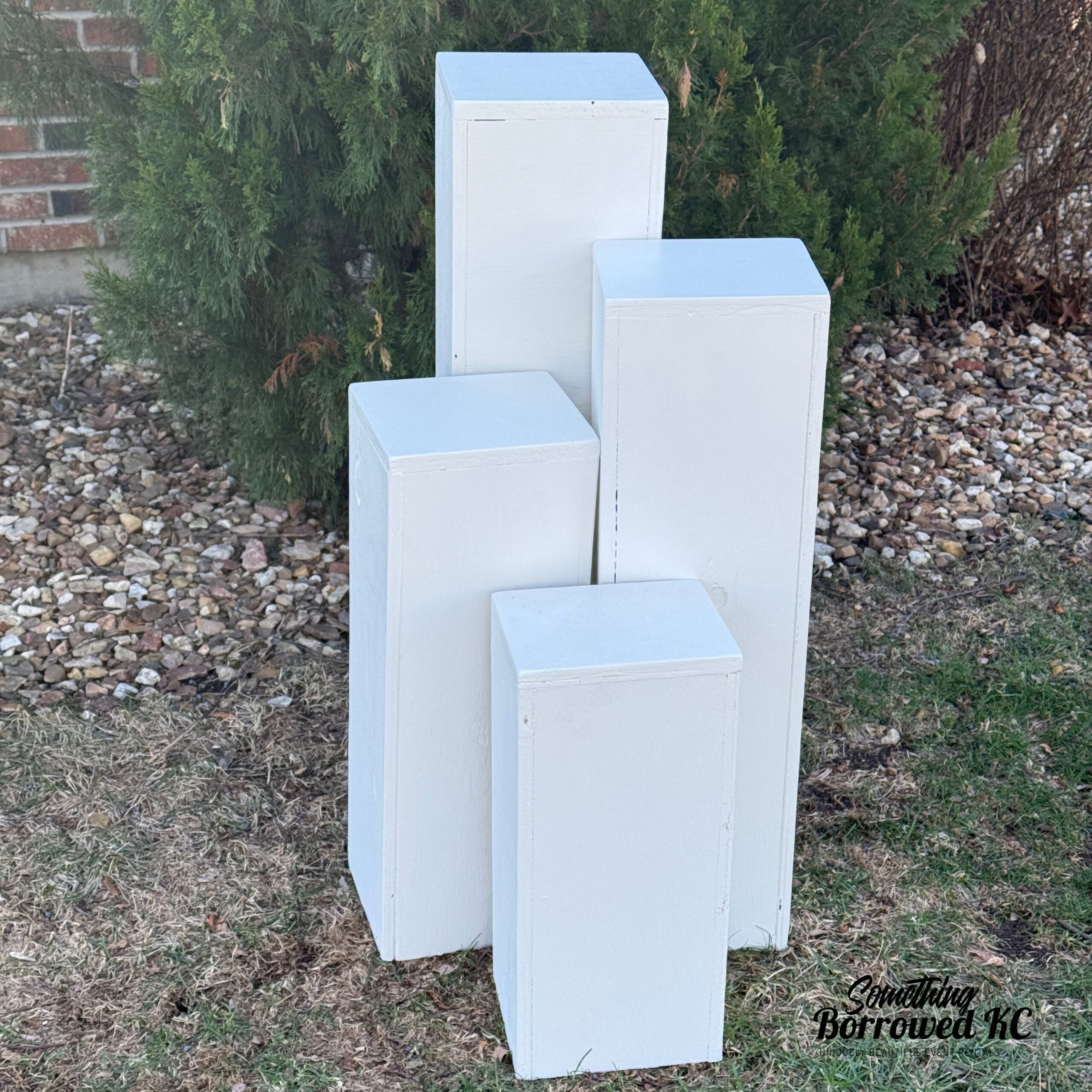 Perfect for pictures, flowers, candles and adding dimension to an alter, entrance or reception space. Set of 4