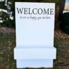 Welcome your guests with this unique welcome sign. Add your own florals, greenery or anything else you can dream up, to the base to create a unique custom look, and welcome your guests in style.